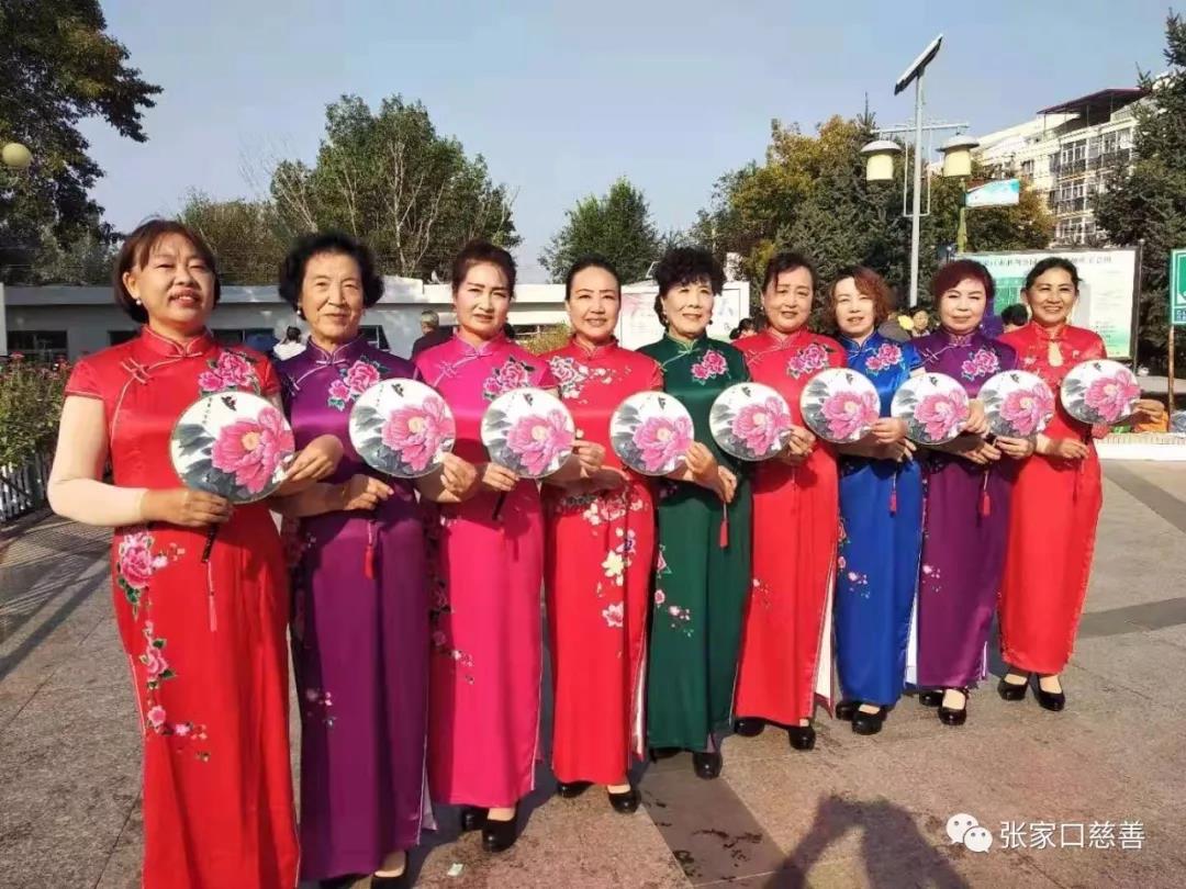 老师们穿上节日的盛装,早7点30分就来到胜利公园,只见老师们穿着艳丽的旗袍,现场好热闹。