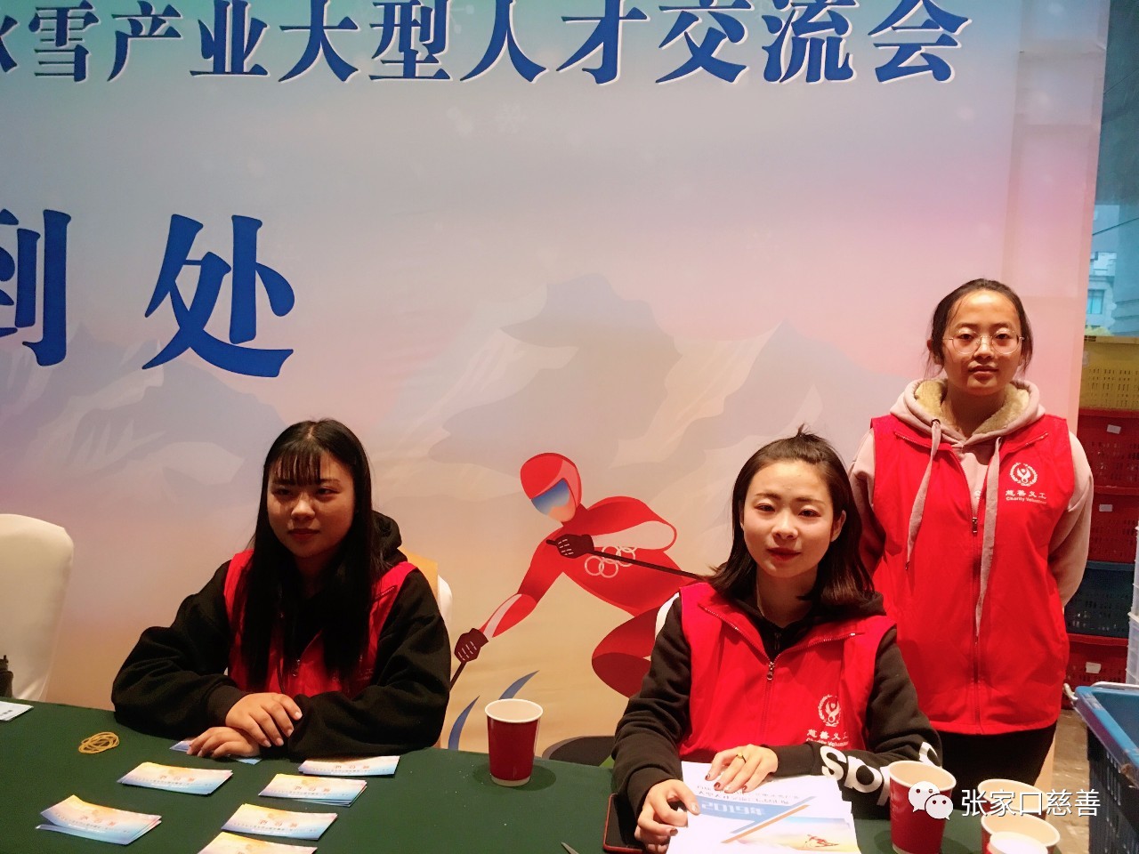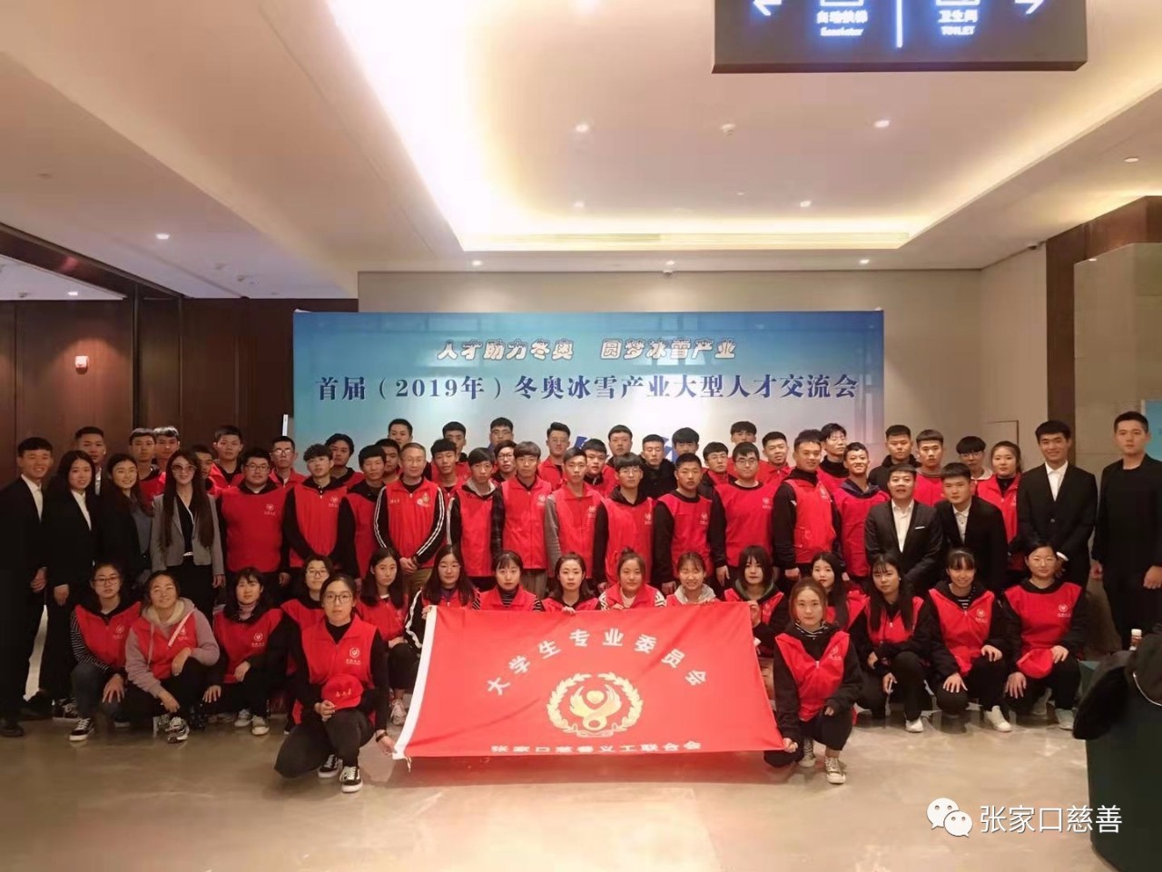 2019年10月24日早上7点半,张家口大学生流动党委、大学生专委会志愿者、雷锋精神志愿者应邀参加由河北省人力资源和社会保障厅、张家口市人民政府、河北省第24届冬奥会工作领导小组办公室共同主办的“首届(2019年)冬奥冰雪产业大型人才交流会”。本次会议也是为贯彻落实习近平总书记视察张家口市时和在京津冀协同发展座谈会上的讲话精神,推动“不忘初心、牢记使命”主题教育走向深入,助力张家口市高质量做好2022年冬奥会筹备工作。