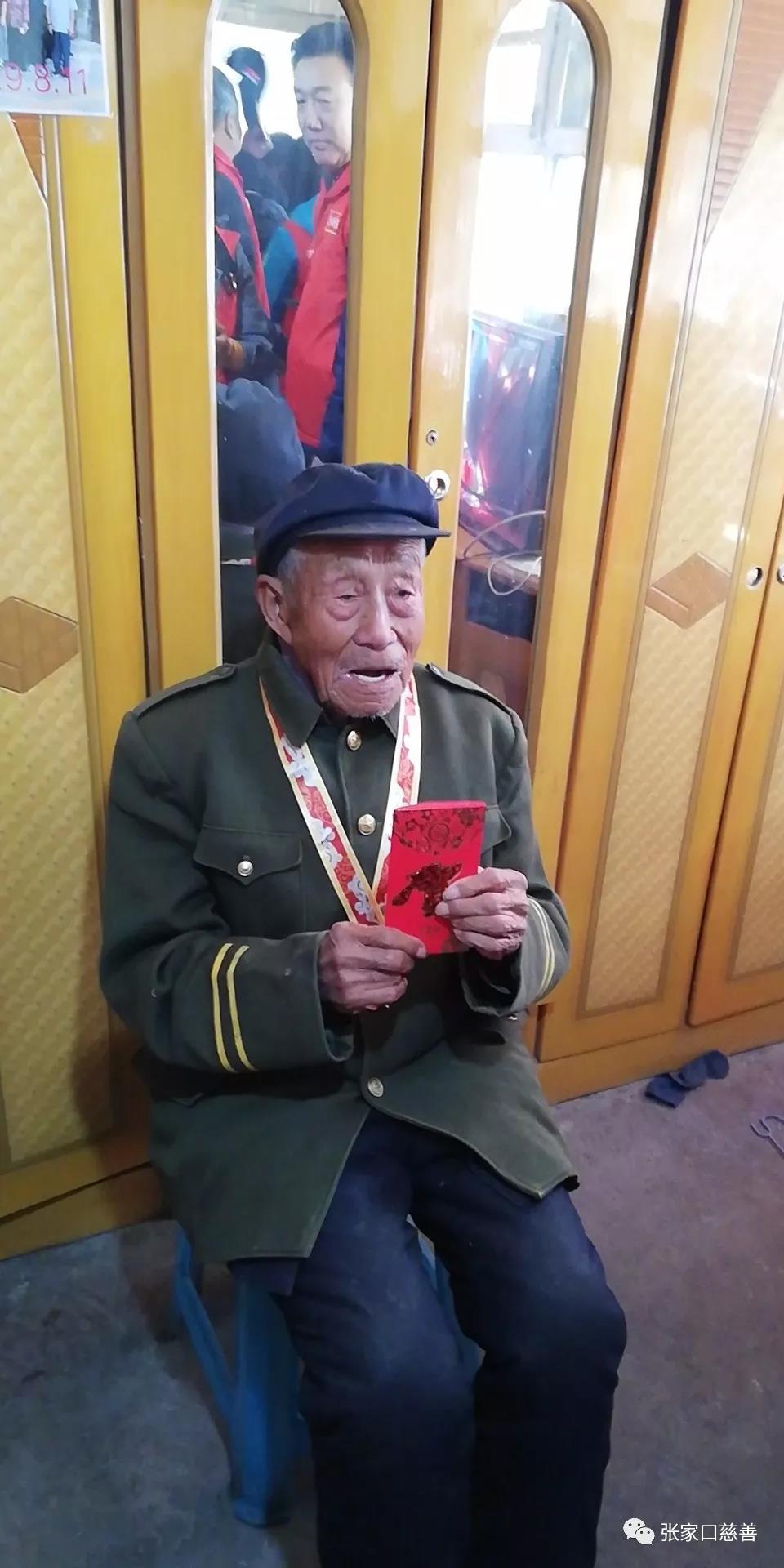 阎老生于1925年,1944年参加地方武工队抗击日寇,1947年因病离开部队回乡务农。参加过抗日战争、解放战争,荣获纪念抗战胜利六十五周年勋章,抗战七十周年的功勋奖章。今天已是我们第三次来看望阎老了,阎老早早的在大门口等待所有志愿者的到来。大门上还贴着一副“不忘初心,牢记使命"的对联,阎老说我早就等你们来了。身体硬朗的阎老把所有来看望他的志愿者热情的请到屋子里。