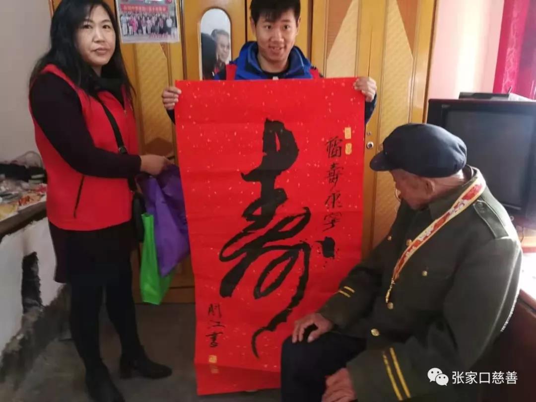 参加慰问的志愿者为阎老带来了生活必须品。刘卓被褥两套;王英西服一套;李尚林羽绒服、毛料裤、保暖上衣;冀福桃两块床单和棉裤;周莹送了床单、被罩、枕套和枕头;张和平羽绒服两件、座便器一套;闫江老师为阎老送上了2020年的春联;阳光行团队带去了米、油、茶叶、挂面、蛋糕、牛奶等慰问品。