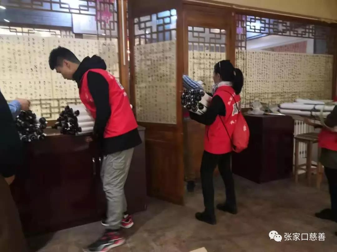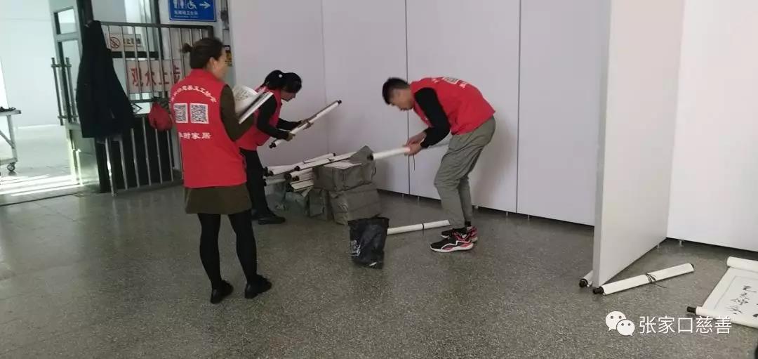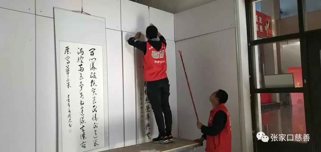 时间来到10月7日早上8点45分,队员们身穿红马甲,早早的就来到展览馆活动现场,没有一位队员迟到。在现场负责人李科长带领下大家到1000米以外的书画城把装裱好的书画作品搬运到展览现场。在李科长的分派下,队员们领到各自的工作任务,大家分工合作,相互配合。