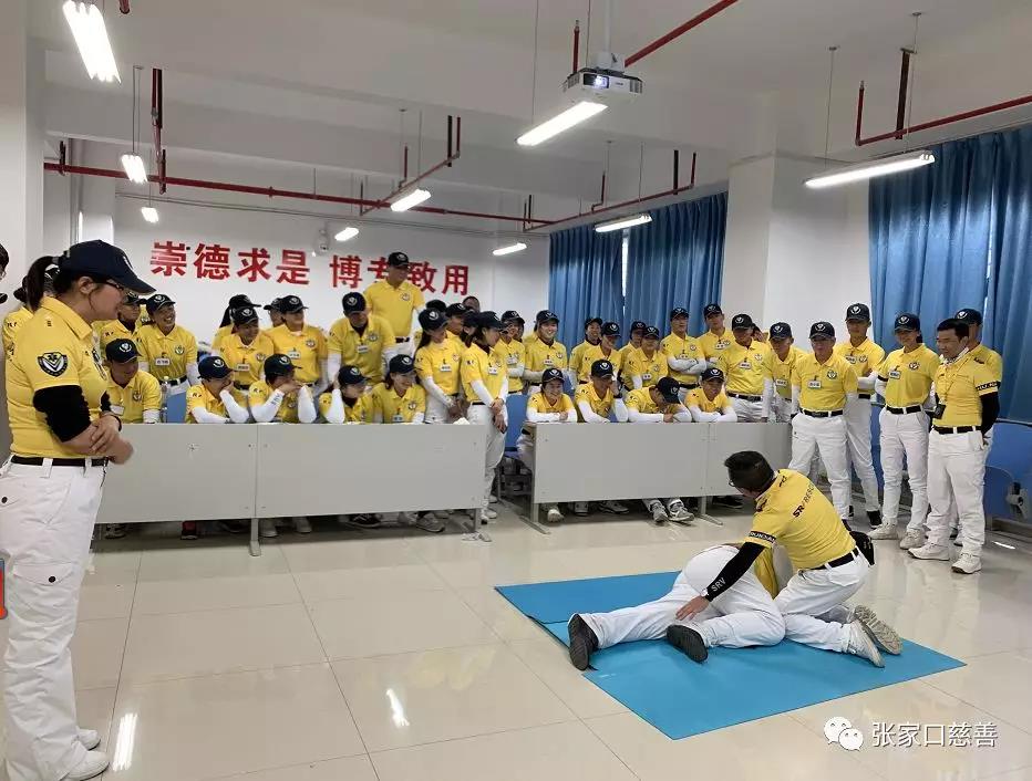 张家口慈善义工联合会对接深圳小黄人应急救护发展中心,组建“张家口小黄人应急救护队”。2019年16-17日,深圳小黄人应急救护发展中心导师来到张家口,在北方学院国际交流大厦进行培训。