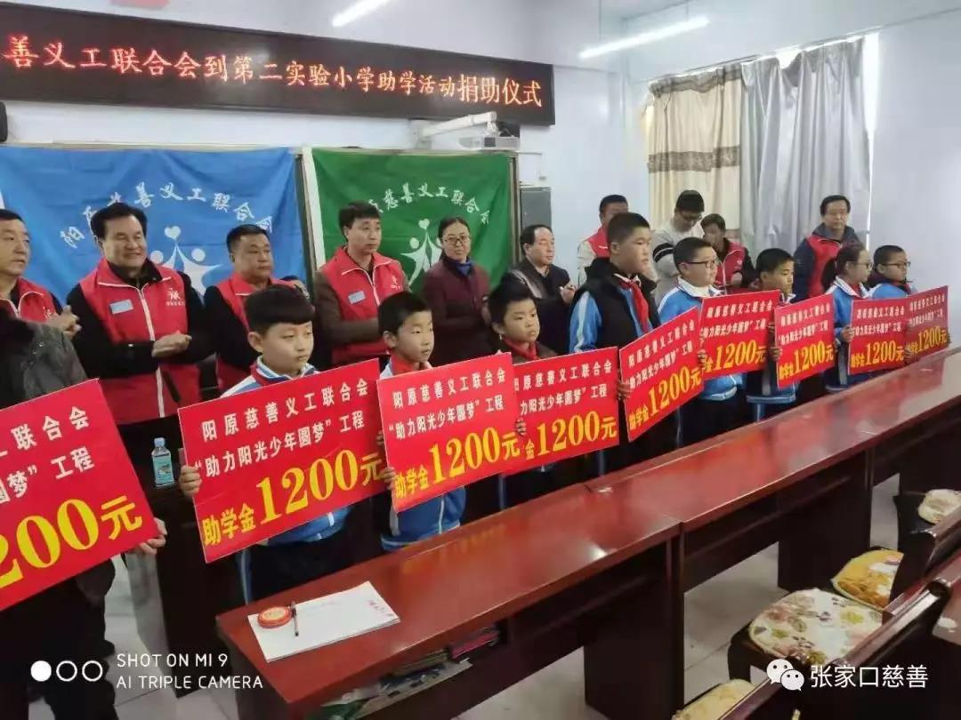 2019年11月26日下午,阳原县第二实验小学欢乐融融,阳原慈善义工联合会“助力阳光少年圆梦”系列工程助学金发放仪式第八站在学校的会议室举行,县委宣传部副部长、文明办主任常学峰、阳原县第二实验小学领导、师生、学生家长200多人、阳慈联会长沈建明等26位爱心志愿者参加活动。活动由二小副校长高占国主持,他说,今天,我校与阳原慈善义工联合会组织捐赠仪式,资助对象是家庭特别困难、品学兼优的9名好同学,目的是帮助同学们坚定信心,顺利完成学业,实现梦想。
