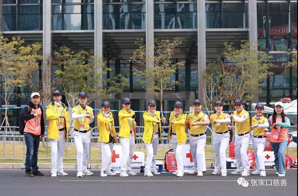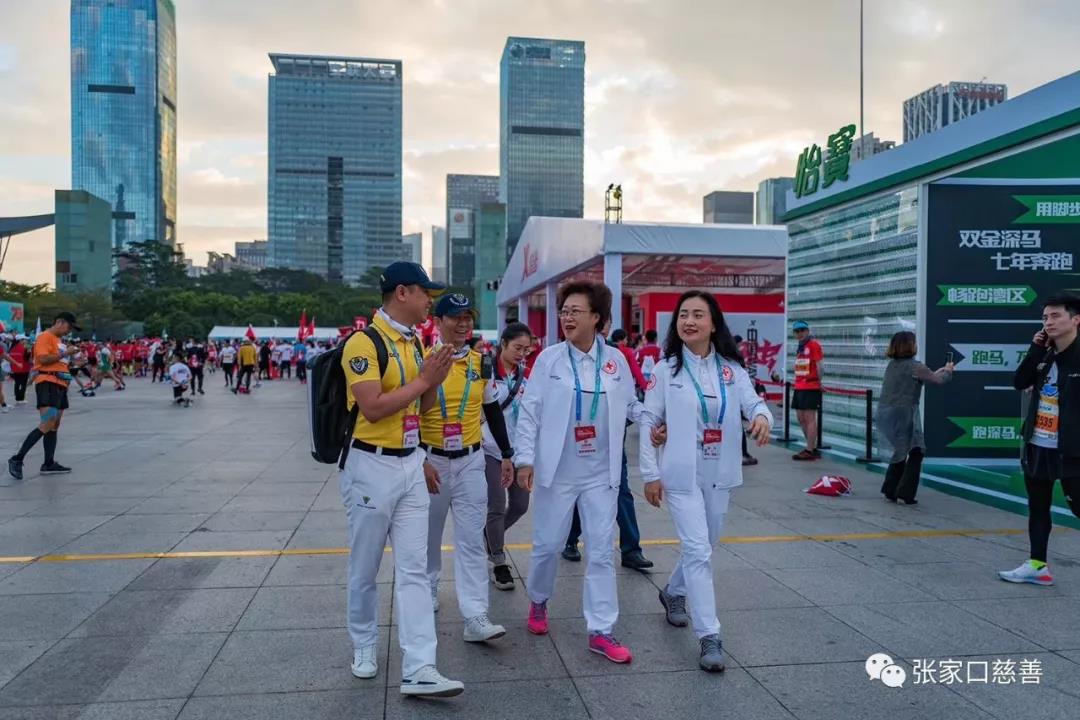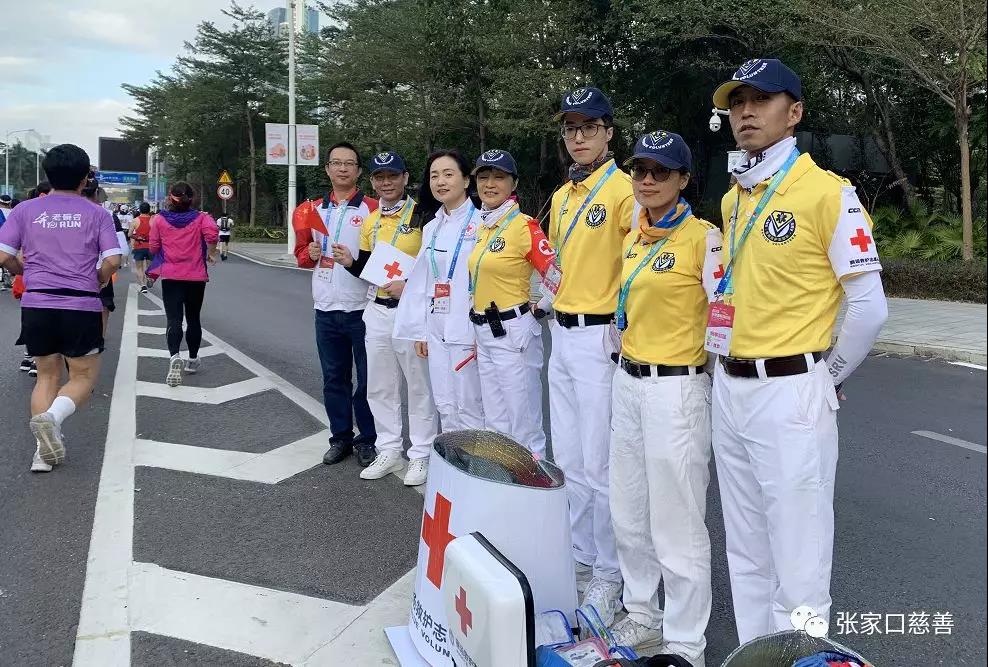 深圳市红十字赛场救护志愿者服务队应2019深圳国际马拉松组委会邀请为2019深圳国际马拉松开展应急救护服务工作。深圳市政府副市长、市红十字会会长吴以环、市红十字会常务副会长兼秘书长张英姬与志愿者同行。由张家口慈善义工联合会党委书记、会长贾庆贺、张家口市崇礼区慈善义工联合会会长张华等八人作为张家口小黄人应急救护队的代表全程参与了此次保障。