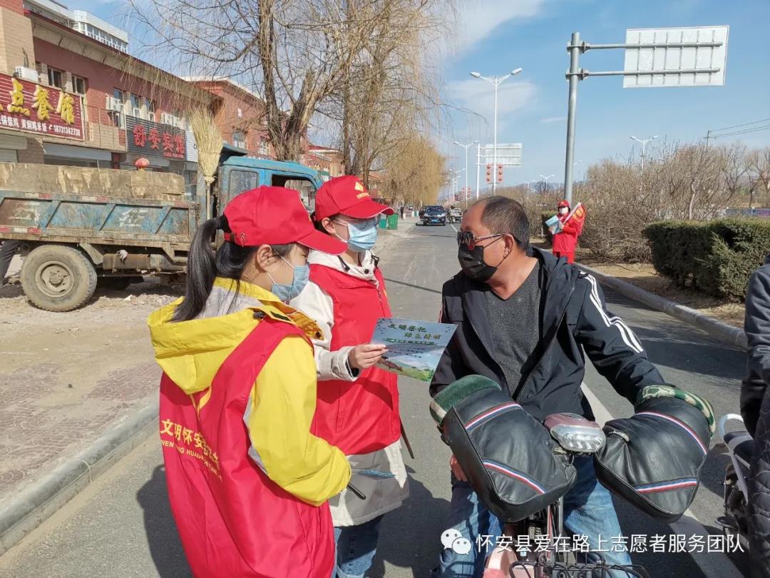 清明节是缅怀先烈、祭奠英灵的传统节日。但今年的清明节却不同寻常。疫情当先,“安全防疫,文明祭祀”成为当前工作的重中之重。清明将至,为了深入贯彻习近平总书记关于防控疫情和英灵褒扬纪念工作的重要指示精神,在县文明办、县团委、县妇联、县总工会联合号召下,4月1日,怀安县“爱在路上”志愿者服务团队走上街头,积极面向广大人民群众开展“绿色祭扫”的宣传、劝导工作。