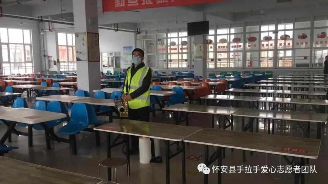 当前国际疫情形势严峻,而我国疫情形势却持续向好,全国各地已逐渐恢复正常的生产生活秩序。如今孩子们的开学问题成了大家最关心的问题之一,孩子们开学后的公共环境卫生也倍受广大家长们的关注。2020年4月10日,怀安县手拉手爱心志愿者团队的志愿者们来到怀安县柴沟堡镇第一中学食堂进行了消毒作业,为孩子们开学打响第一枪,备战开学。