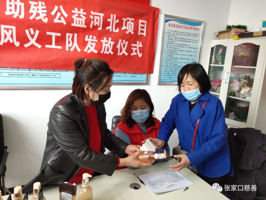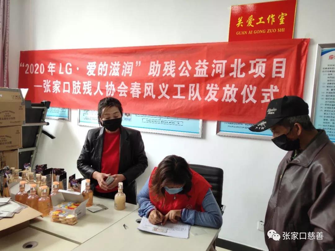 下午二点,她们准时由刘俊琴带队一行十人来到了张家口市桥东区红旗楼南社区东麓苑残友之家工作室,开展了“2020年LG·爱的滋润”助残公益河北项目—张家口肢残人协会、春风助残义工队发放仪式。