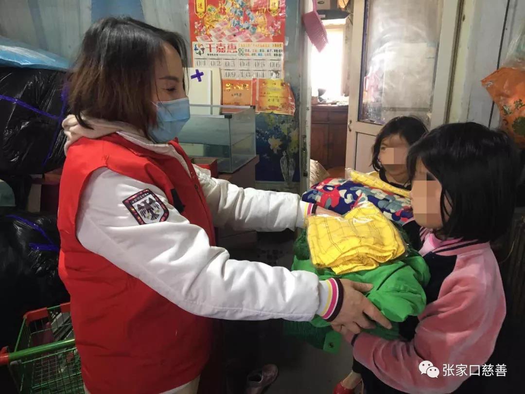 (张垣博爱志愿者韩晓明为困境儿童送衣物)