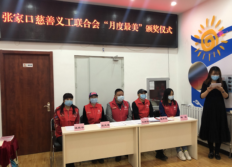 近年来,张家口志愿者队伍紧紧围绕完成三大历史任务、交出两份优异答卷,以及创建文明城市等中心工作,积极履行社会责任,自觉服务奉献社会,为推动张家口建设发展贡献力量。为鼓励先进、树立典型,发挥志愿者和志愿者团队的意义和作用,进一步调动张家口志愿者队伍参与和支持张家口建设发展的积极性创造性,张家口慈善义工联合会由每届轮值委员会每月评选一次月度最美,由轮值委员会评选并颁发奖项,同时实现人人共建公益平台的理念。
