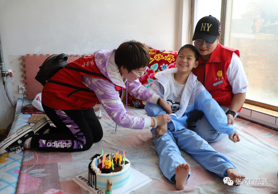 六一前期,共青团宣化区委书记张宏霞带领宣化慈善义工联合会的志愿者们走进励志残疾儿童小柴家,陪他一起过一个不一样的六一儿童节。