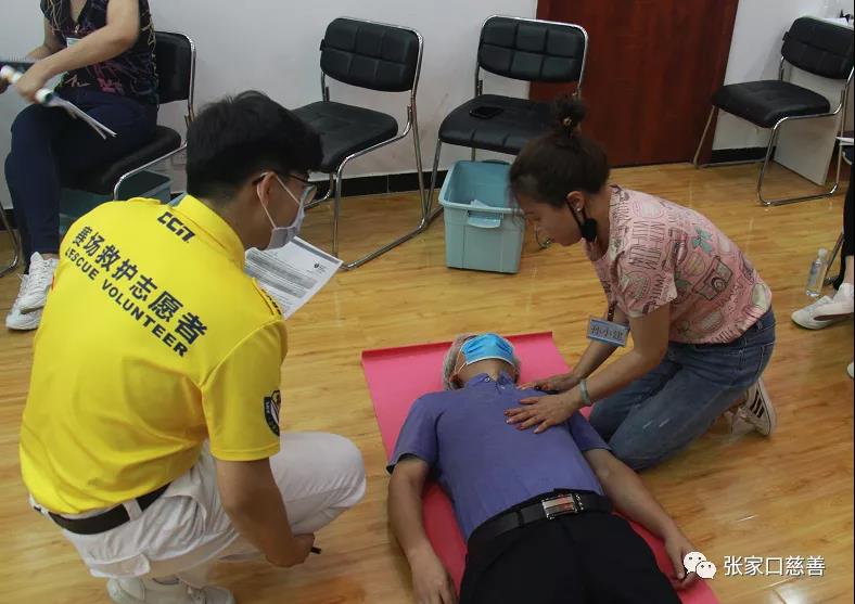 6月16日,深圳市小黄人应急救护发展中心组织的美国心脏协会Heartsaver国际救护员认证培训在世纪路社区进行。共有11人参加本次培训。张家口慈善义工联合会党委书记、会长贾庆贺,党委副书记冀桂宝,秘书长赵小军,副秘书长孙小建作为学员也参加培训。