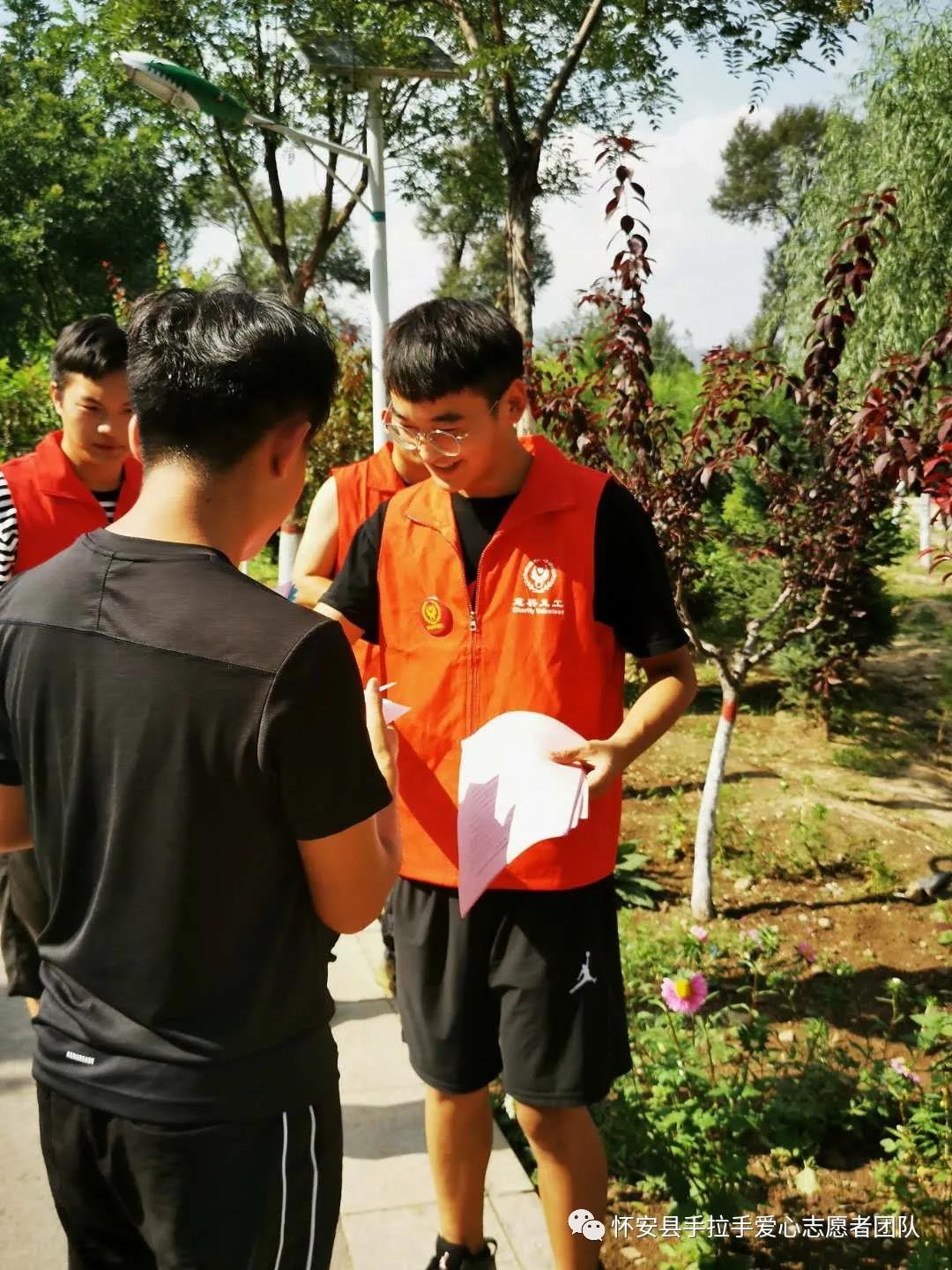 良好的生态环境是实现中华民族的内在要求,是增进民生福祉的优先领域。习近平新时代中国特色社会主义思想和党的十九大精神提出全面加强生态环境保护,打好污染防治攻坚战,提升生态文明,建设美丽中国。为贯彻和落实这一指导思想,提高全民环保意识,怀安县手拉手爱心志愿者团队大学生志愿者王超群、徐磊、高帅和郭宁宇来到公园以发传单和口头宣讲的形式,宣传了垃圾分类的益处及垃圾分类的基本常识。