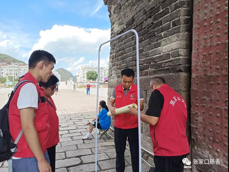 2020年8月14日,八月的张库大道依旧如前,阳光正好。为了弘扬公益精神,参与公益的建设,张家口文物保护义工队在苏景队长、崔振江副队长的带领下,来到大境门景区进行志愿者招募活动。