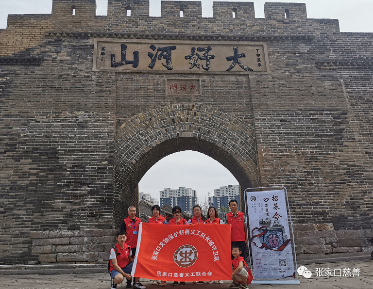 张家口文物保护慈善义工队在大境门景区积极开展古建筑巡护工作,并开展团队建设。