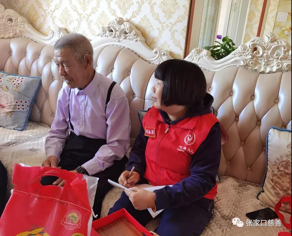 铭记历史,勿忘国耻,珍爱和平,爱我中华!吾辈自强!为了铭记历史,感恩为祖国解放、民族独立做出贡献的英雄们,在2020年9月18日上午8点,经开区阳光行志愿者协会秘书长李蓉萍组织志愿者李亚慧、刘淑萍、何桂明、杜同会、李尚林一行六人,带着慰问品,驱车来到张家口口里东窑子村东泉聚小区,看望慰问革命老兵宁生永,同时也带去了全体志愿者对宁老的关爱与敬仰。