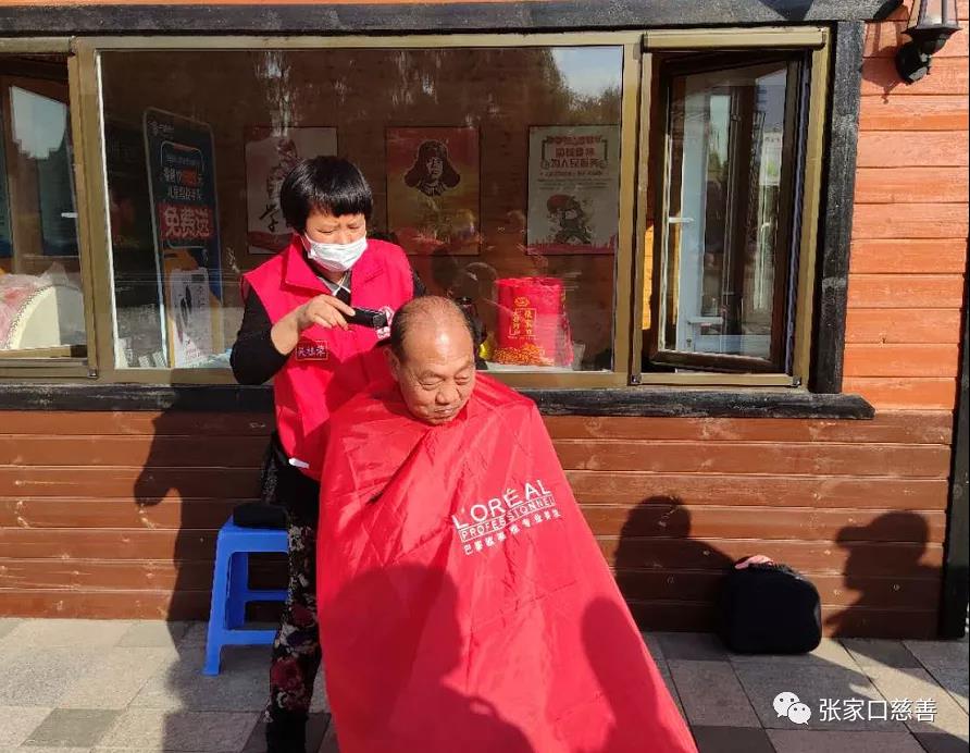 10月15日下午是深秋季节的一个暖日,虽然天气凉爽也带着太阳光照射的温暖。阳原慈善义工联合会雷锋理发队准时来到泥河湾文化广场,在小木屋为居民理发。