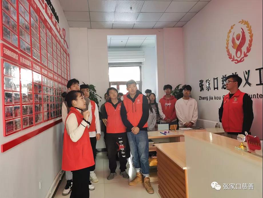活动一开始,由团委副书记刘宏宏带领大家参观张家口慈善义工联合会,介绍了市慈善义工联从成立至今的发展历程。之后在二楼会议室召开对外开放日座谈会,团委书记、副书记、委员、各高校志愿服务组织负责人做了自我介绍,增加了彼此的认识。