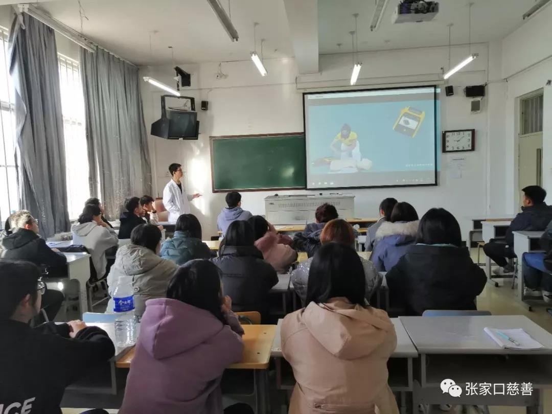 为提升队员的专业知识,具备志愿者的基本技能,更好地服务于社会。大学生医学志愿者服务队于2020年11月7日上午9点,在张家口学院医泽楼开展心肺复苏术(CPR)专业知识讲解。