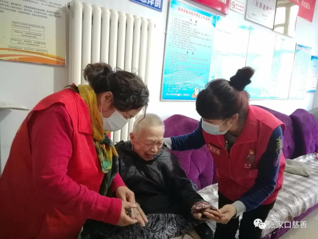 走进敬老院的时候,老人们高兴的抓住志愿者的手说:“闺女你们来了,冷不冷,可想你们了”。志愿者分两组进行,心理疏导一组,护理一组。老人们自觉的排着队等待理发,志愿者郑兰枝连续为6位老人理发,当赵艳丽给老人剪指甲的时候,老人感动的流泪。每一次的辛苦付出,都有着不一样的感受。和老人谈心也是一门学问,要了解每一位老人的心理、脾气、日常生活和身体健康状况等方面的问题。有的老人情绪化比较严重,通过院长的描述,对老人进行心里疏导,帮着找原因,用最真诚的话语使老人开心,化解情绪,解开心结,最终逗得老人像个孩子似的笑了,连连感谢。