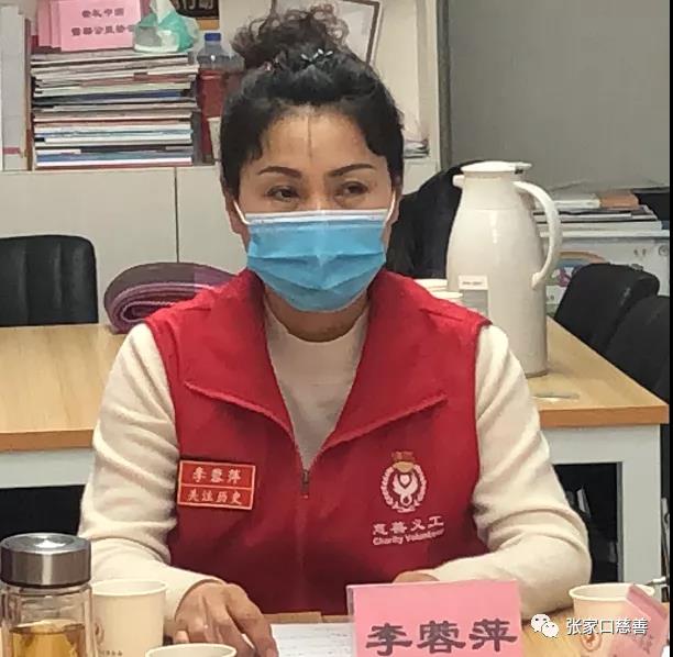 会议由助老专委会会长、第32届轮值会长李蓉萍主持,参加会议的有白鹭环保志愿者服务队队长樊志霞、宣化区残疾人事业发展促进会副队长常曙光、张垣博爱志愿者团队队长韩晓明、雷锋精神志愿者服务队队长任大龙、张家口旅游志愿讲解服务队徐成文、京城广厦义工队田世英、笔芯志愿服务队唐利君;张家口慈善义工联合会党委副书记冀桂宝、执行秘书长赵小军、副秘书长臧沙沙、会员部部长郑惠娟、张佳莉。