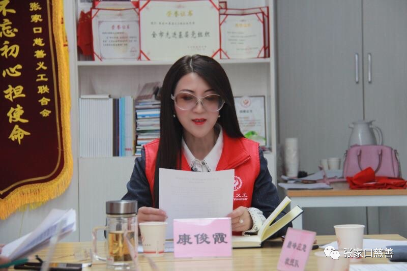 参加会议的有张家口慈善义工联合会党委副书记冀桂宝,大学生专业委员会会长、第35届轮值会长康俊霞,巅峰应急救援队副队长荆丽杰,福德仁爱公益队队长毛艳芳,康水湾志愿服务队队长王智峰,搏毅志愿服务队副队长付海涛,蔚县圆梦助学扶残公益队秘书长姚俊丽,爱之赢公益荟王晓乐;张家口慈善义工联合会会员部张佳莉、孔德宇,宣传部高春辉,会议由康俊霞会长主持。