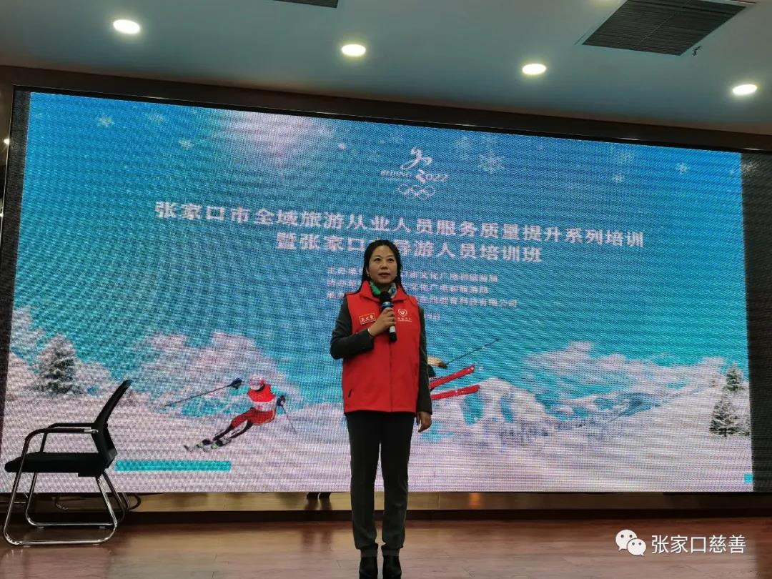 为提高旅游从业人员专业素质及志愿服务意识,助力冬奥会,做好文旅行业的模范带头作用,2021年4月20日下午,张家口市旅游局邀请张家口慈善义工联合会旅游志愿讲解服务队吴立曼,作为张家口市全域旅游从业人员服务质量提升系列培训暨张家口导游人员培训班讲师授课,100余名旅游从业者参加了此次培训。