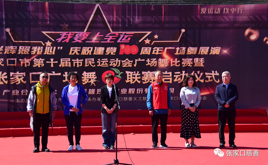 出席今天活动的领导有张家口市体育局群众体育科科长杜炜敏,张家口慈善义工联合会顾问刘振祥、党委副书记冀桂宝,执行秘书长赵小军,第36届轮值委员会会长、双工专委会会长张喜梅,张家口市广场舞协会会长李凤英,河北亚雄现代农业股份有限公司领导。广场舞协会会长李凤英致辞,以全民健身广场舞的形式向党献上诚挚的祝福,重温红色经典传承革命精神,弘扬红色文化,讴歌中国共产党人领导各族人民艰苦奋斗的丰功伟绩。