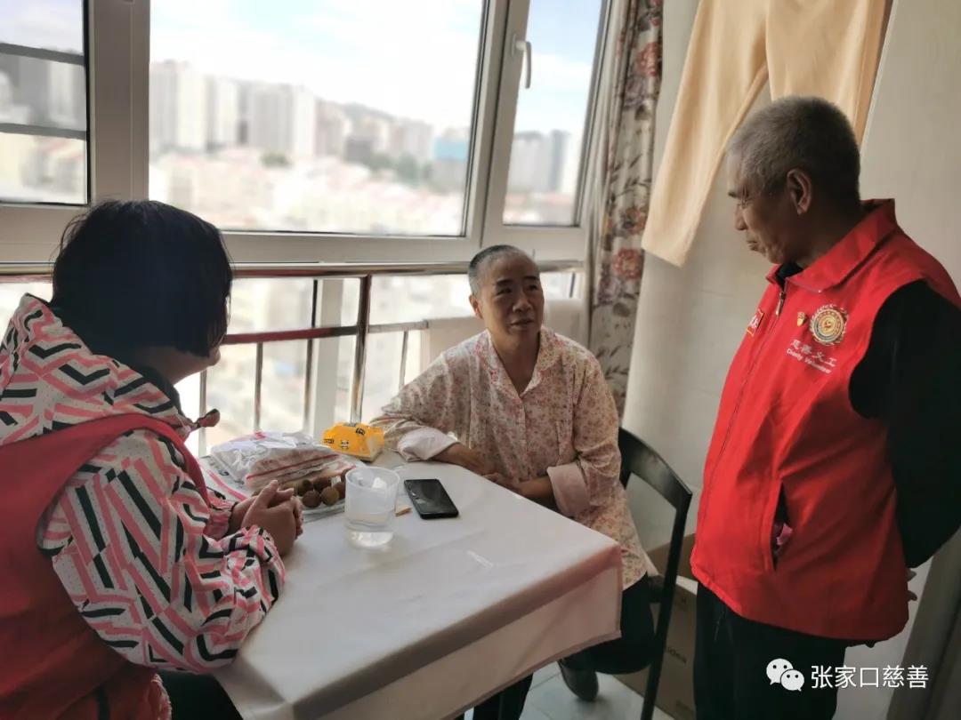支部书记详细询问了李兆英的病情及目前状况,嘱咐其安心养病,注意后期康复保养,早日恢复健康。李兆英对公益队的关心表示由衷感谢,表示后期会积极配合治疗,树立战胜病魔的信心,争取早日重返工作岗位。