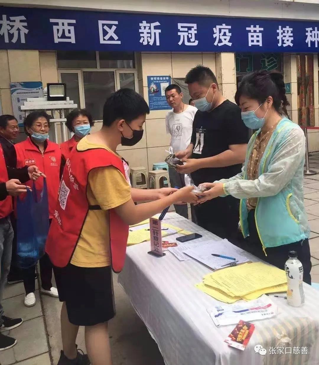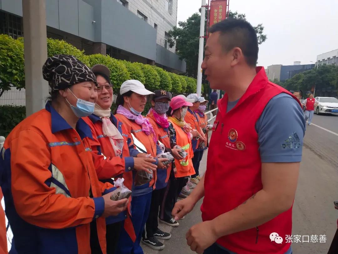 又为明德北社区医院和桥西区商业医院的在疫苗接种点一线的医护人员送去了十分甜美的粽子,医护人员们表示:“能够为疫情防控工作贡献自己的一份力量,我们义不容辞。我们在疫情防控前线守护大家,为的是后方更多的小家能团圆过节,惟愿疫情早日结束,山河无恙,岁月安康。”志愿者蔺海说,一线的医护人员这种大爱让人敬佩和尊重,我们非常的感动,希望能通过这次送粽子的活动向坚守岗位的一线医护人员表达我们的崇敬之心,他们舍小家为大家,任劳任怨,无私奉献,用实际行动诠释着“白衣战士”的责任与担当!