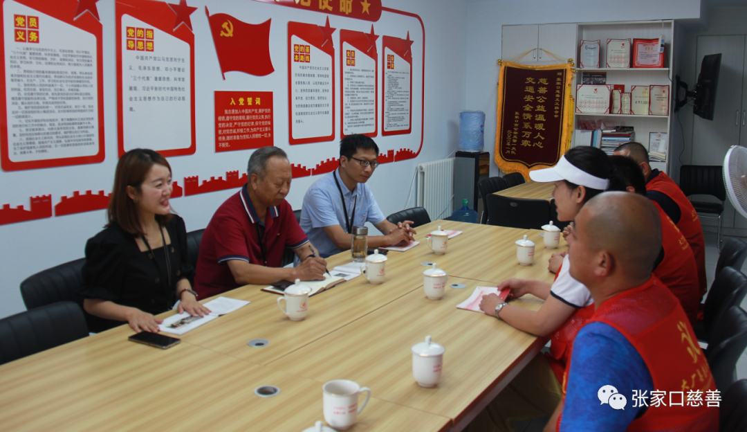 7月23日,大厂回族自治县志愿者协会会长李培、秘书长尹征、办公室主任吴海森、协会雷锋爱心车队队长李旭东一行人莅临张家口慈善义工联合会学习、交流,张家口慈善义工联合会党委副书记冀桂宝,副秘书长臧沙沙、徐立斌进行接待,并召开座谈会。