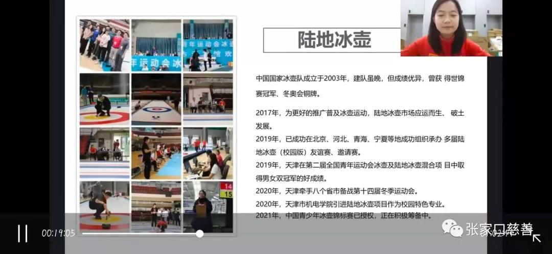张家口市肢残人协会、春风助残义工队高利利等人有幸参加了本次培训。本培训班为期3天,采取互联网“云课堂”线上培训方式。设置《冰雪运动文化与残疾人冰雪运动发展》、《冰雪运动常识,感受冰雪运动魅力》、《残疾人健身基本知识与活动方法》、《残疾人冬季体育活动组织方法》、《残疾人旱地冰壶运动项目》、《残疾人滑轮基础指导》、《残疾人康复体育进家庭指导》等课程。