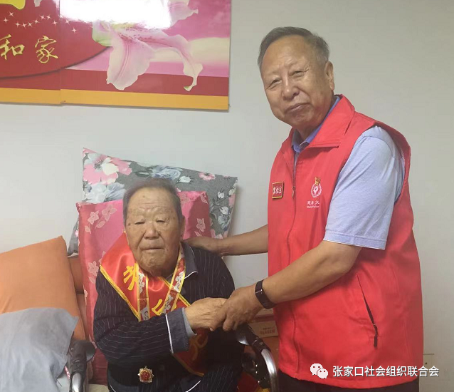 迎八一,庆节日,忆峥嵘岁月,感纷飞战火。7月29日下午,张家口市委统战部主办,张家口慈善义工联合会、经开区阳光行志愿者协会具体承办,组织社会新阶层代表人士来到张北,慰问王珍、殷德润两位两位功勋老兵。