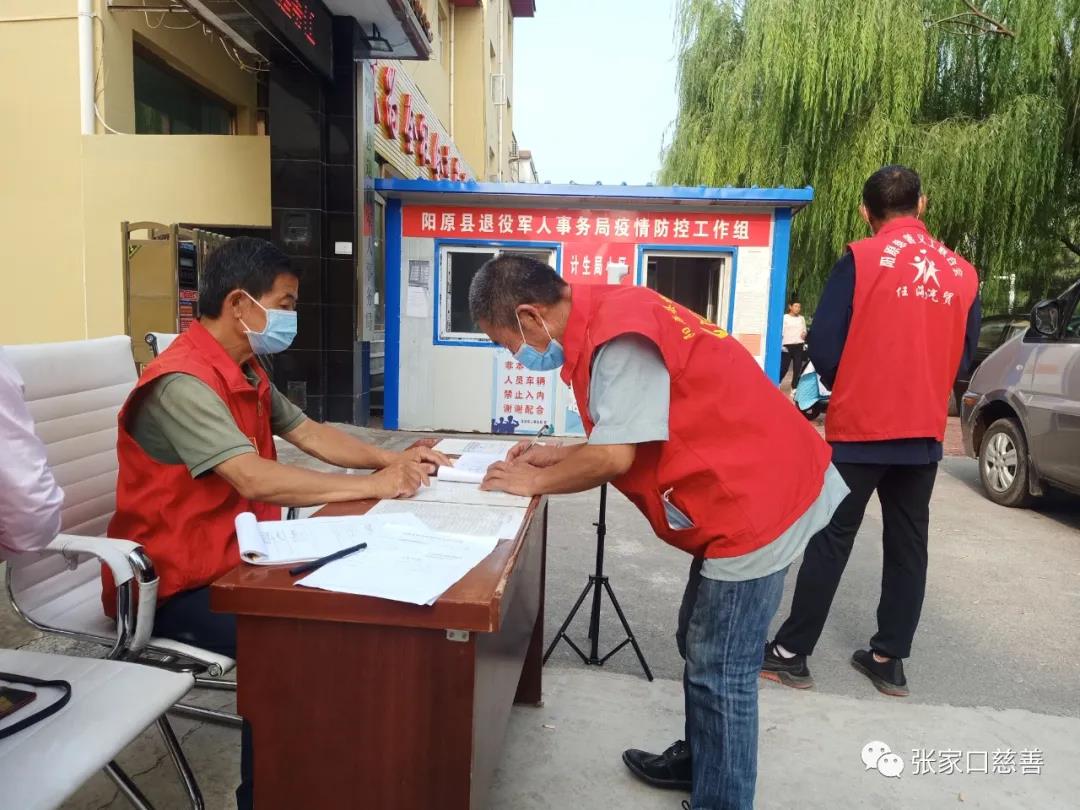 阳原县爱国拥军联合会志愿者,从8月3日走进计生小区至8月17日,上午八点上岗到晚上10点下岗,每天14个小时为出进小区的每一位和到退役军人事务局办事的每一位扫码、登记信息、测体温。在这14天志愿服务中,志愿者们充分体现出无私的奉献精神,他们不管是风雨交加之天,还是烈日之下,始终坚守在自己的岗位上,没有丝毫松懈,乌云遮不住太阳,阴霾终究会散,阳原县爱国拥军联合会志愿者的坚持奉献精神得到了民众的肯定。