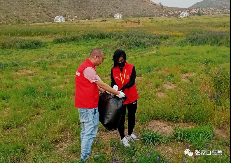 2021年9月12日上午,黄丝带志愿者之家建行建信宣化分队志愿者在黄俊伟队长的带领下,走进天籁谷景区,参加“垃圾不落地,景区更美丽”活动。
