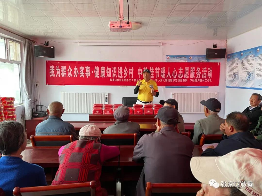 为提高村民的健康意识,普及健康知识,传播健康理念,营造健康的生活环境。9月14日,驻驿马图乡下碌碡沟村工作队联合崇礼区慈善义工联合会、张家口红十字小黄人赛场救护志愿服务队在崇礼区开展“中秋佳节暖人心、送健康义务宣讲”活动。
