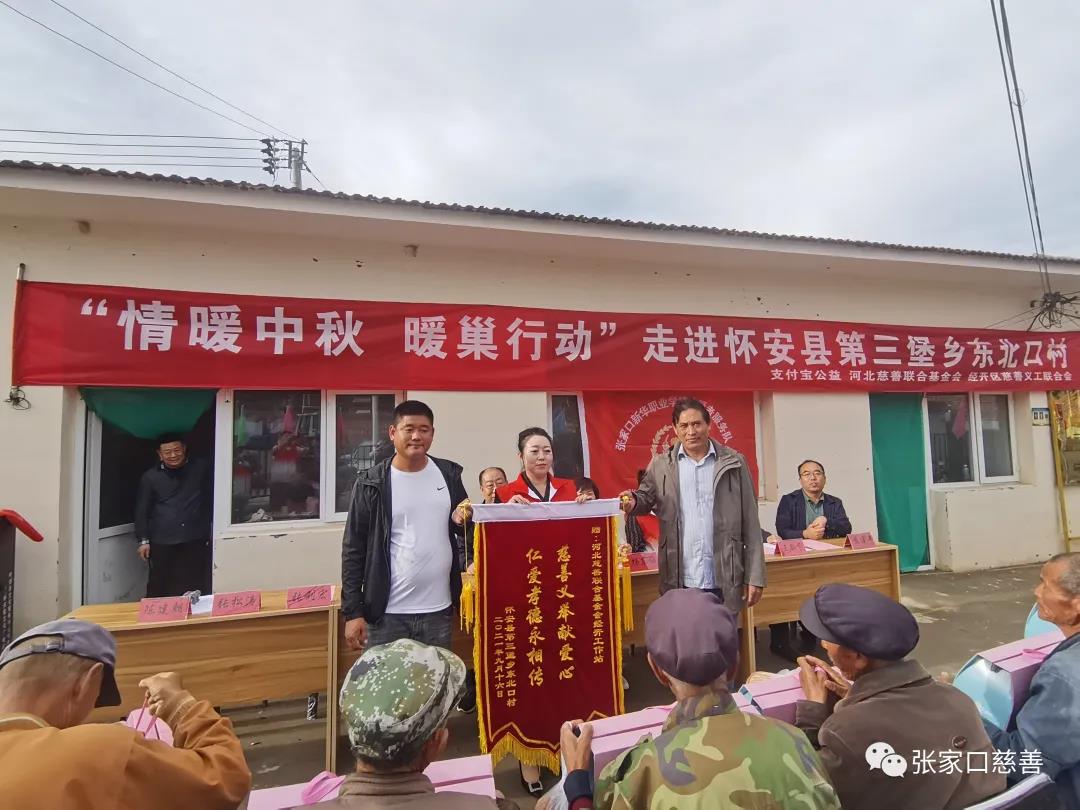 9月16日,正值中秋来临之际,张家口经开区慈善义工联合会副会长张利宏、秘书长杨晓梅带领张家口新华职业学校志愿者服务队来到怀安县东北口村,为了让老人们增添更多的幸福感,志愿者们和大家相聚在一起,举办了“情暖中秋,暖巢行动”活动,为80位村民送去了中秋慰问品,包含面粉、月饼、被子、唱戏机、手电筒等爱心物资。