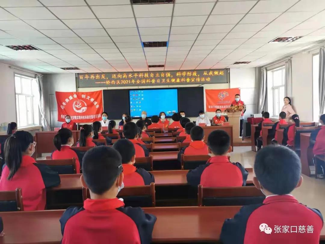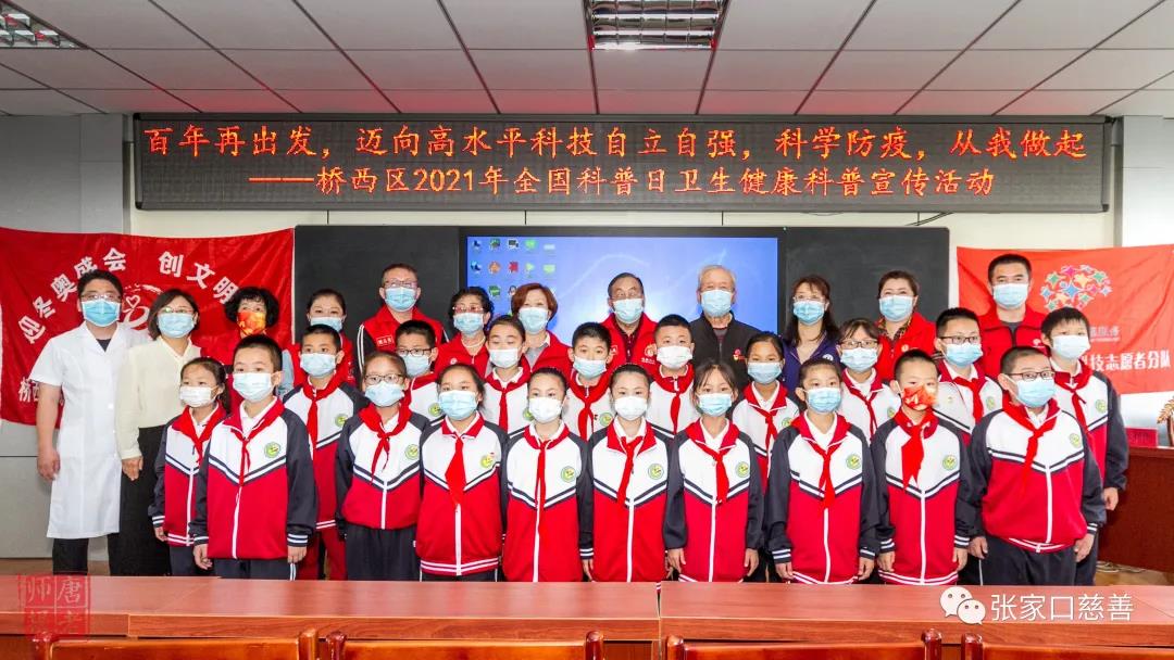 9月17日,由桥西区科协主办,张家口雷锋事迹展览室与通顺街回民小学承办,桥西区医院、鼓楼西社区协办的“百年再出发,迈向高水平科技自立自强,科学防疫,从我做起”全国科普日卫生健康科普宣传活动在通顺街回民小学举行。全国离退休干部先进个人、全国优秀校外辅导员赵柱国,桥西区科协主席宁永丽,副主席肖惊山,通顺街回民小学校长康雅莉、鼓楼西社区书记周亚元,桥西医院张利生大夫、张家口慈善义工联合会妇联主席康雪莲、雷锋精神志愿者服务队党支部书记樊志勇参加了活动。
