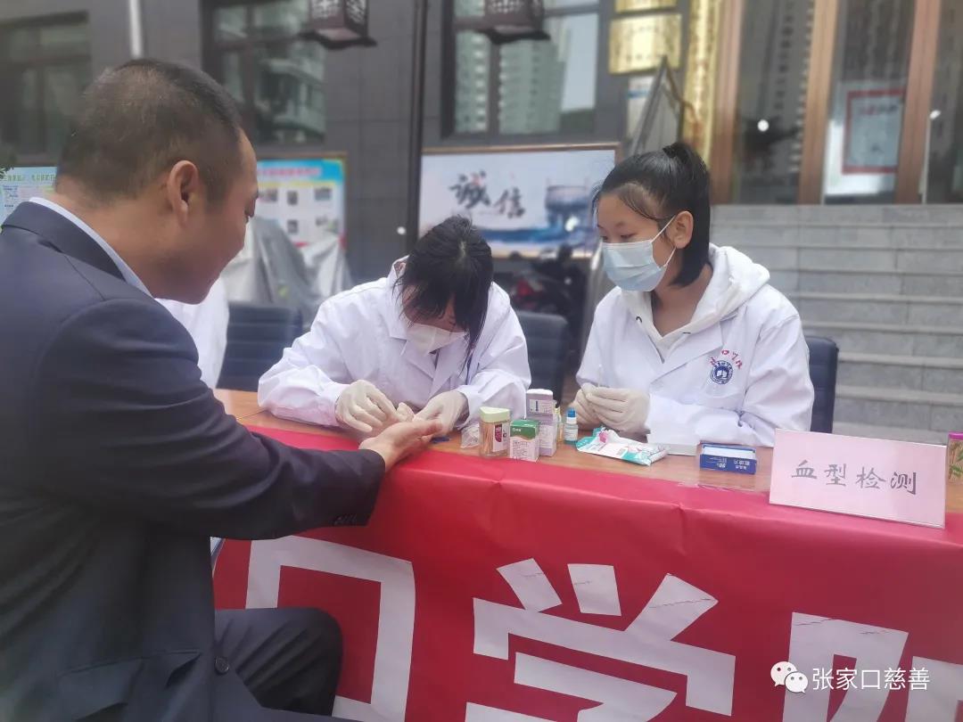 大学生医学志愿者服务队主要负责对于血压血糖的测量以及血型的测定,对前来咨询的居民进行了血压、血型、血糖的测量,其中高燕飞老师还为居民进行了口腔检查,普及了口腔保健知识,提倡关爱口腔健康。