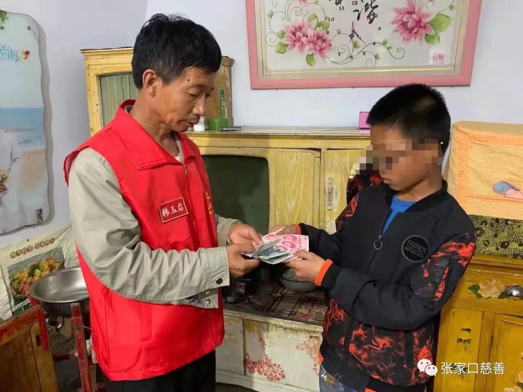 金秋九月,黍麦金黄,又是一年开学季。2021年9月19日,阳原新禧双缘义工队队长韩玉启带领志愿者张世梅、周桂兰、钱瑞林,走进贫困学生家中,为周学生颁发助学金。