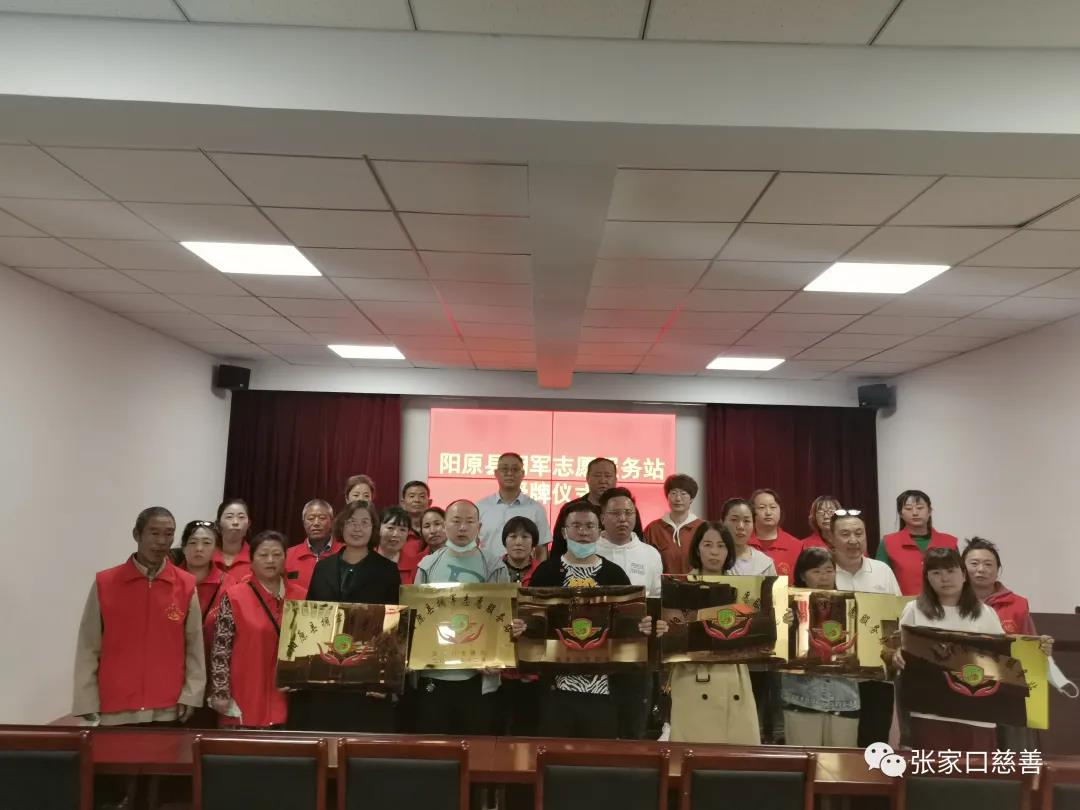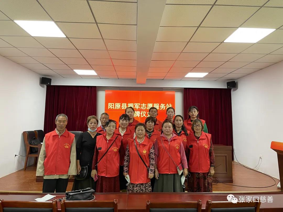 阳原县退役军人事务局党组书记、局长,党组成员李海英、陈玉峰,阳原县爱国拥军联合会会长田广阔为拥军志愿服务站授牌,他们都表示积极响应,为军人军属、退役军人和优抚对象提供精准服务。最后田会长表示,积极开展走纺慰问,结对帮扶等活动,为退役军人、军属架好连心桥,当好保障部,办好暖心事。
