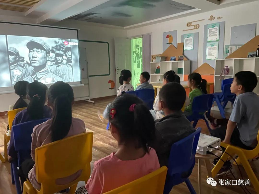 站点儿童观看了从1949至2019历年来共15次阅兵大典合集,女孩们看到英姿飒爽的女兵从天安门走过纷纷发出惊叹的声音,男孩们看到了坦克导弹眼睛都仿佛发出了亮光。更有几名同学问道:老师,我长大后可不可以也成为一名解放军呀?