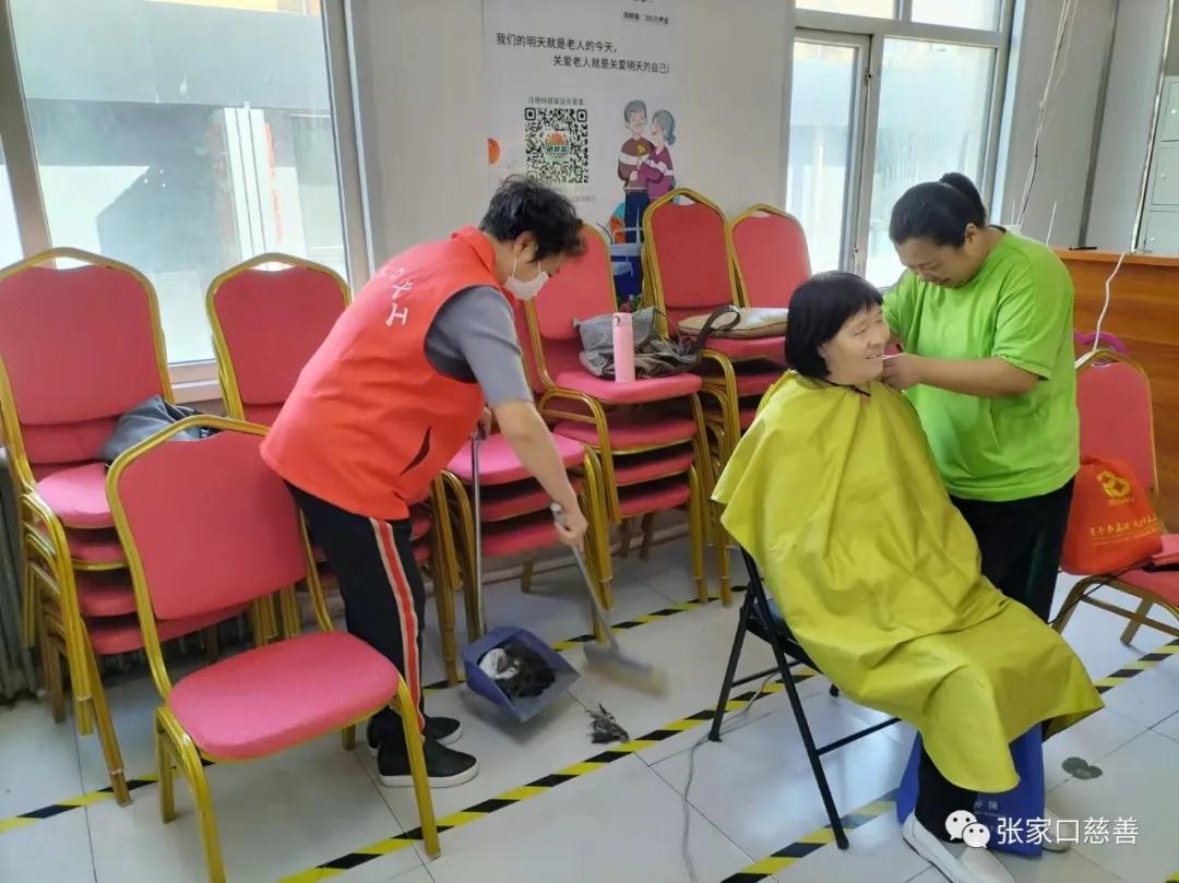 为了弘扬爱老、敬老传统美德,为老年人提供优质的志愿服务,发扬志愿服务精神。9月29日在国庆来临之际,在市慈善义工联助老专委会组织下,利他义工之家队长李尚林带领志愿者殷果花、张建花、董成涛、郑兰枝和北师乐缘义工之家队员马德生 、赵慧燕、刘丽琴,参加享安居家养老服务中心(幸福驿站)“让爱洒满人间”主题的免费理发活动。