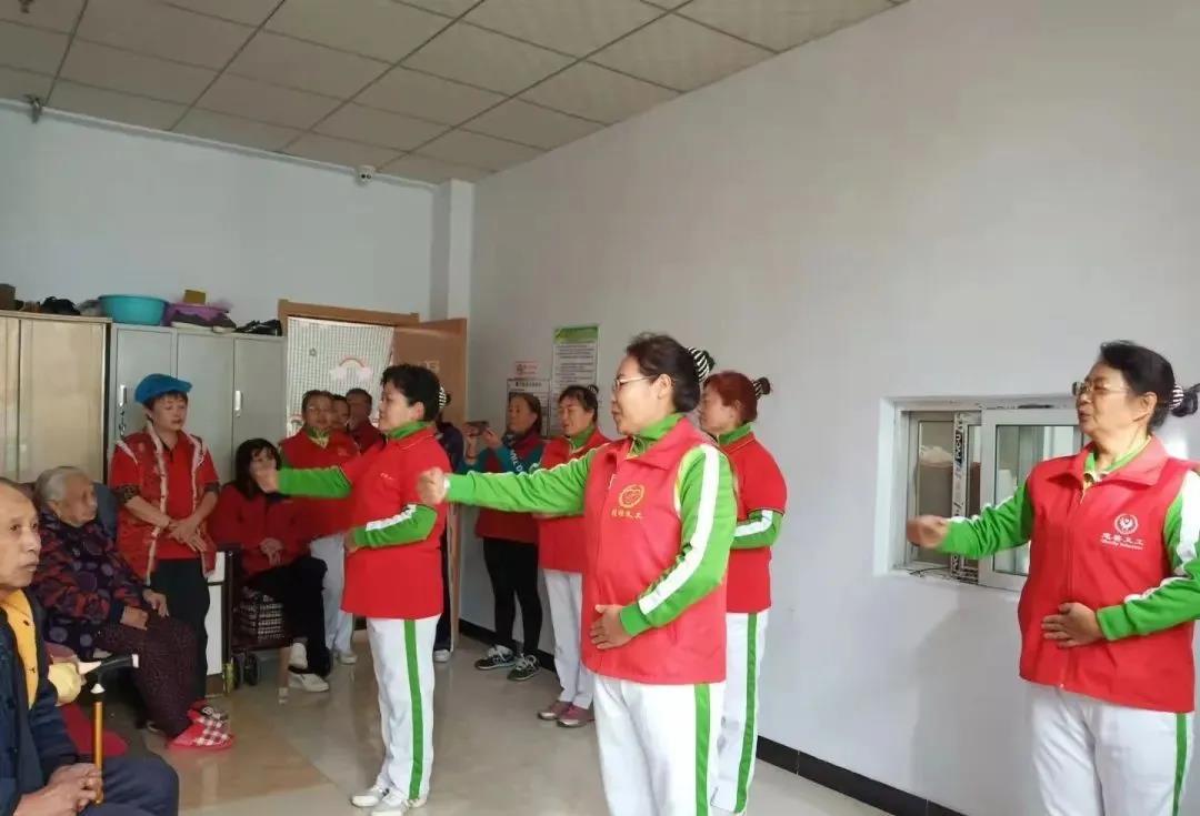 走进敬老院,看到一张张熟悉的面孔,老人们早早的等着大家的到来,大家齐动手挂条幅、搬桌子、搬凳子,一切就绪后,把老人们陆续搀扶到屋里,安排就坐,开始文艺汇演,首先舞蹈队以一曲《最美中国》拉开了序幕,随后手语、健身操闪亮登场,接下来的精彩表演把现场气氛发挥到极致,老人们也不示弱,把早早准备好的节目都展示出来,你唱《骏马奔驰保边疆》,我唱《刘巧儿的新旧社会对比》,你唱《母亲》,我唱《你莫走》等等,志愿者们也是精彩不断《为了谁》、《我和我的祖国》、《泪蛋蛋掉在酒杯杯里》、《万疆》大家如同歌咏比赛一样,你落我起,歌舞升平,整个房间充满着浓浓的节日气氛,掌声笑声连连不断,老人们开心的像个孩子一样,瞬间感觉年轻了许多。