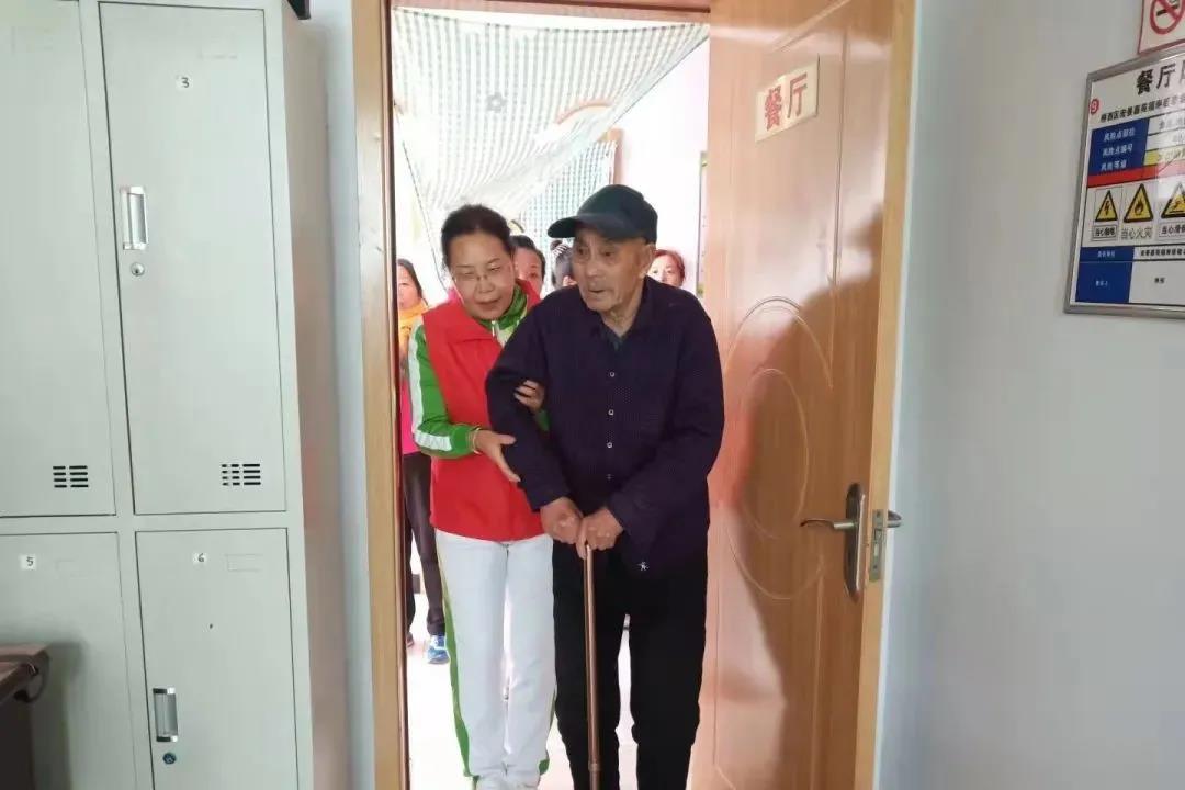 志愿者搀扶着老人