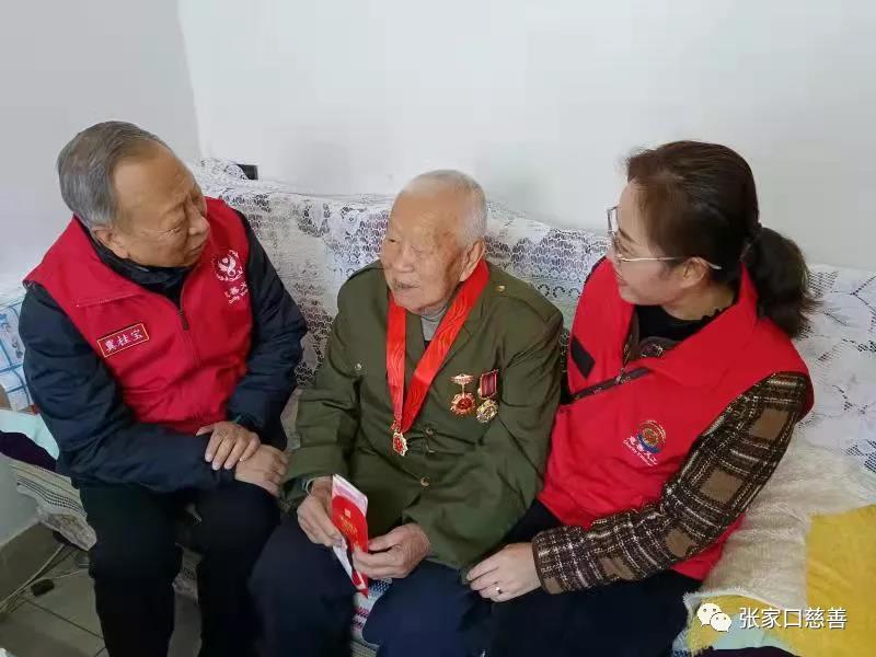 10月17日上午,虽然是深秋的季节,但天气却一如既往的明媚晴好。蓝蓝的天,暖暖的阳光,风却有了浓浓的凉意,落叶金黄,铺洒在地上,构成了一幅绝妙的秋天美景。阳光行志愿者协会第五组,一行8人慰问抗美援朝老兵宋贵发老人活动,由市慈善义工联党委副书记冀桂宝、利他义工之家队长李尚林带队,杜同会、张建花、殷果花、吴静如、侯永东、张春红一同参加慰问活动。 宋贵发老人家住桥西区元台子一所旧式楼房。走进老人家中,看到老人依然保持朴素的生活作风。1930年出生的宋贵发老人92岁,已是耄耋之年。但仍然精神矍铄、目光炯炯、思维敏捷、战争时期的经历记忆犹新。老人讲述了曾经的过往,1948年参加中国人民解放军,1949年加入中国共产党, 1951年6月参加抗美援朝战争,抗美援朝战争结束后,担任驻地东北吉林68军家属工厂电动机厂厂长,长达10年之久。又调到后勤处任管理员职务,后来提升为后勤处副处长。