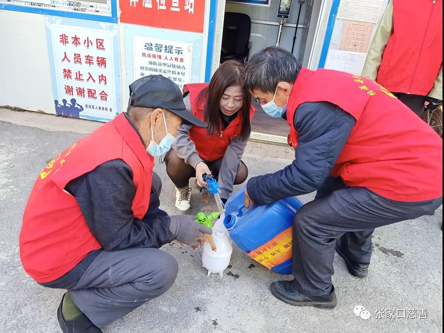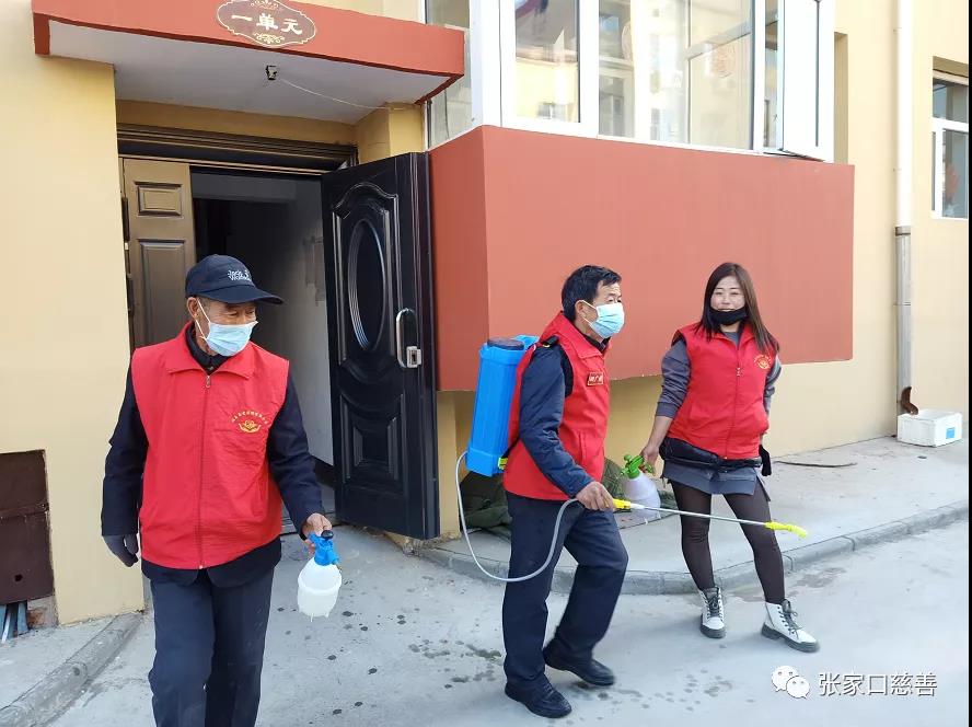 阳原县爱国拥军联合会长田广阔背上50斤重的消毒液对计生小区和事务局的每个角落进行消毒,志愿者们在计生小区门口和值勤周围张贴疫情防控工作流程表,张贴了阳原县关于《开展全面排查和落实网落实网格提前告诉工作的公告》和《阳原县全民排查来(返)阳人员风险等级地区情况汇总》宣传单,向小区居民和宣传,教育引导居民和单位职工自觉遵守。