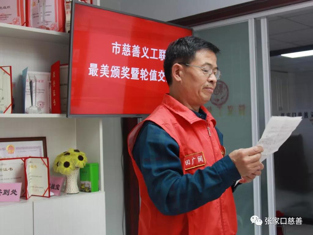 张家口慈善义工联合会紧紧围绕完成冬奥会筹办和本地发展两份优异答卷为核心开展志愿服务活动,推动张家口公益事业与志愿服务的发展。为了更好的鼓励先进、树立典型,发挥志愿者和志愿者团队的协作,张家口慈善义工联合会由每届轮值委员会每月评选一次月度最美志愿者及团队,推广公益平台人人共建的理念。