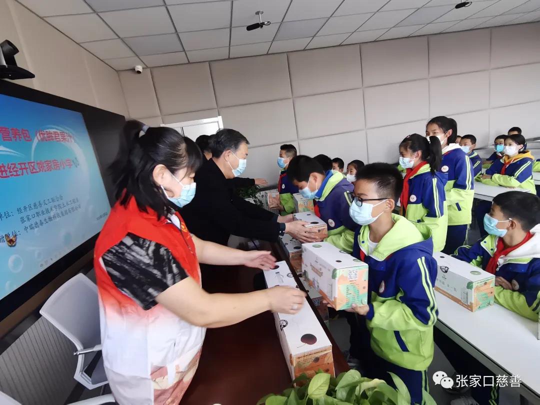 2021年11月4日,张家口经开区慈善义工联合会秘书长杨晓梅带领志愿者来到姚家房小学开展爱心捐赠活动,为50名小学生送去了优眸君果汁。