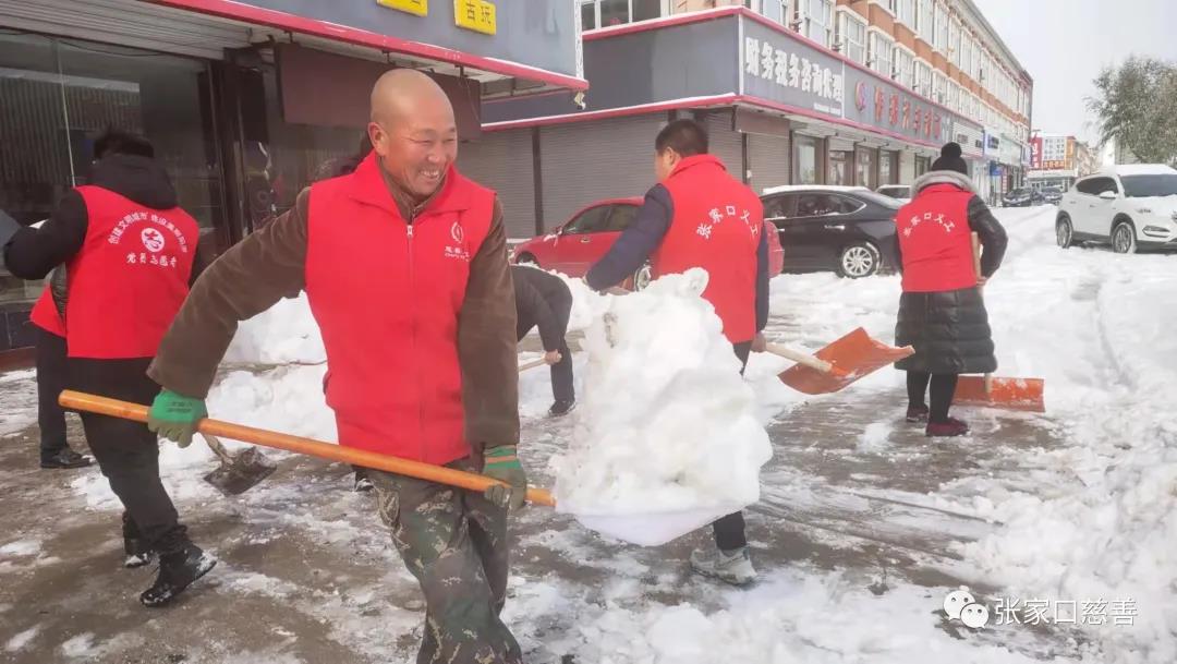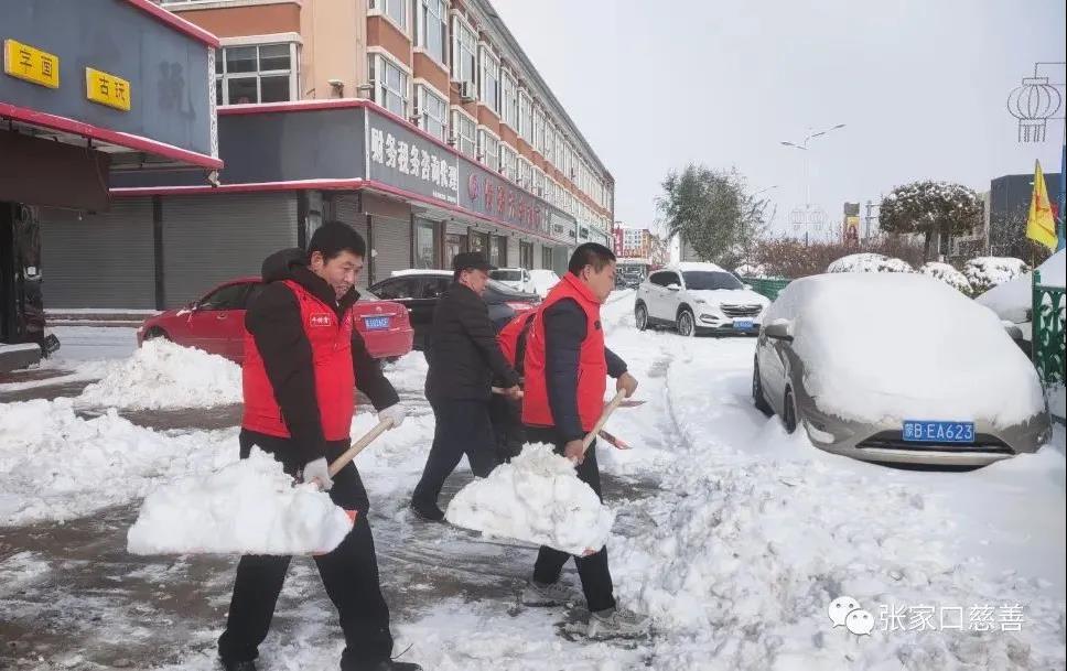2021年11月6日下午开始,华北大面积降雪,阳原也不例外,潇潇洒洒下了一夜,人们早上起床一看,足有七八寸厚的大雪覆盖了整个县城,好一派北国风光。想到大雪将会给居民带来诸多不便,阳原慈善义工联合会发出动员令,阳原义工联平台部分负责人、阳原春风送暖义工队、花轿文艺传媒队、泥河彩玉志愿者服务队、弘州爱心队、东方慈善义工队、新禧双缘义工队、雷锋理发义工队、爱国拥军联合会等团队二十多名志愿者报名参加。