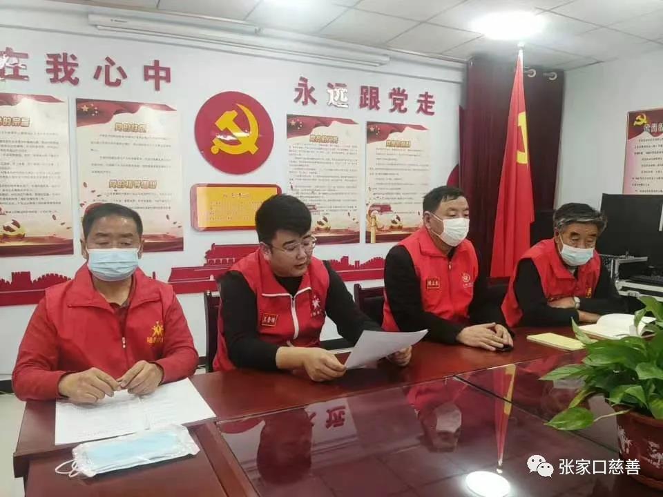 马占海老师传达了11月17日张家口慈善义工联合会党委扩大会议精神,学习宣传贯彻党的十九届六中全会精神。传统文化队支部书记贾宪讲到:中国共产党员是中国传统文化的忠实传承者和弘扬者。我们要以十九届六中全会精神做起点,以公益事业为己任,为社会、为社区我们做力所能及的事,为社会的精神文明建设贡献自己的力量,为创建文明城市当好志愿者,为开好冬奥会当好东道主做贡献,让红马甲成为全社会的亮点。